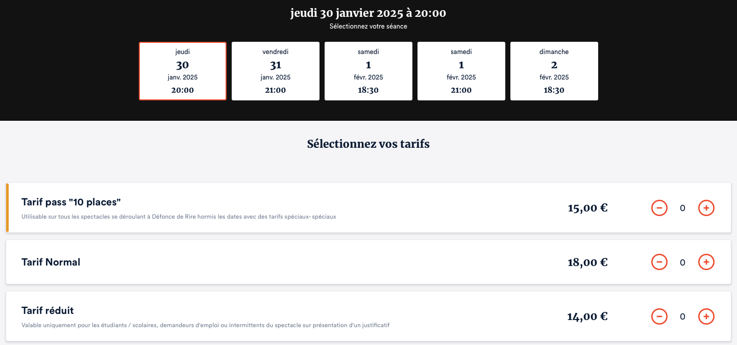 - Choisissez la date et ajoutez le nombre de place souhaité dans votre panier