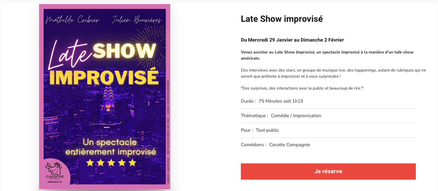 - Choisissez votre spectacle et cliquez sur :